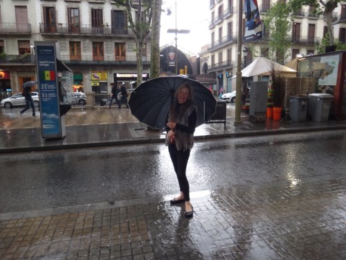 The rain in Spain falls mainly on the plaaaain……and in Barcelona as well… We arrived at Barcelona's quaintly named 'El Prat' Airport at 1:30 pm on Sunday , and the weather, while a little cloudy, was still quite sunny. A short cab ride to the city centre, and our small hotel, ' Circa 1905', (http://www.circa1905.com/eng/home ) in the Eixample district. By the time we'd unpacked, had a shower, changed etc, the rain had started to fall. We grabbed an umbrella from the hotel lobby, and set out exploring the city on foot, for both of us the first time in Barcelona.