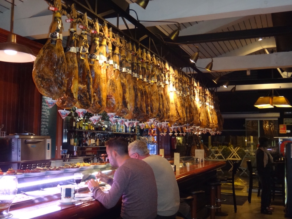 As luck would have it ( or maybe not!) my best mate BL was in town, and we had ( he had) arranged to meet at the Cafe Vienna in Plaza Catalonia …. problem was, there was no Cafe Vienna in the plaza…Ym and I waited for the rain to ease a bit, and then headed off to a small square a few streets behind Ramblas, named Pi, where again we took shelter, this time in a Tapas bar. A bottle of Rioja later, and some few tapas, we ceased worrying about the rain…. and after a series of SMS messages back and forth between BL and I, not long after he joined us. What a reunion we had….. and we couldn't leave the tapas bar because of the rain, but after yet another bottle of Rioja, who the hell cared… and so we headed off, to try and find the way back to our hotel….but not before I had to use the rest rooms which were down a steep flight of narrow stairs in the basement…. there was a door marked Hommes, a door marked Femmes and most surprisingly a door with a logo of a wheelchair with the word ' Disabled' marked on it.. How any disabled person could possibly make it down the stairs in the first place to use this, or any toilet, had me baffled. Was it a law that you had to supply a disabled toilet…even if there wasn't any access to it?