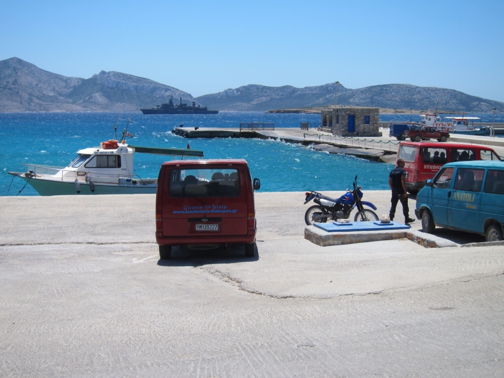 View from the Cafe Limani, Koufonisia port. ( I cant see any ferryboat, only a warship!