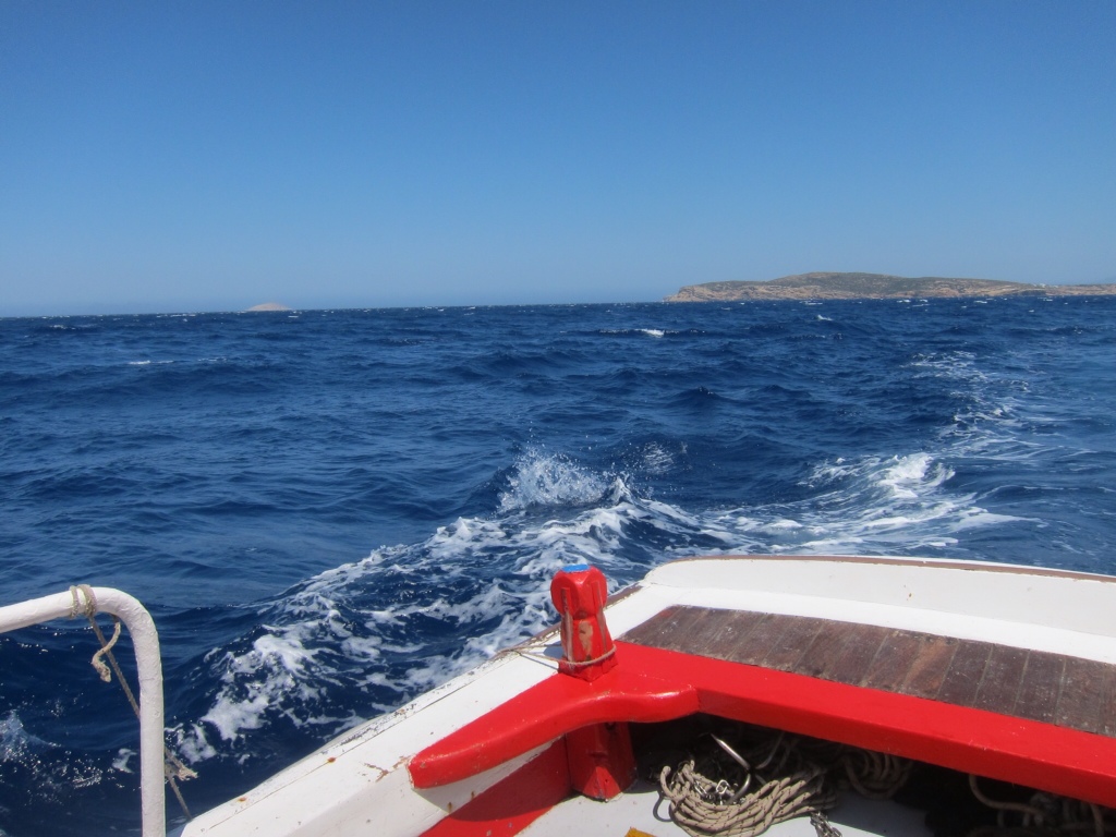 With Wee-lee-am's help, we hauled our luggage onboard, stowed it down in the hold, and sat in the small cabin of Costa's fishing boat….and quickly set sail….. we waved and shouted our farewells to 'Wee-lee-am'….. and he shouted back…'Καλο Ταξιδηι' …. (Kalo Taxidi or bon voyage) as we headed off into the swell. (He is staying on koufonisia for at least another couple of weeks…. he seems to like it here…but then, what's not to like!)