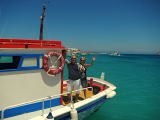 Now Costa has a bit of a reputation as a 'Cavliarος.. or 'lecherous old bugger'…. but harmless I suspected… and when he spotted us on the jetty his face broke into a broad grin and he yelled out in greek..' ah, so it's you two at last' … (he'd been trying to get Yineka-mou onto his boat since last year when we were here…even promising her a free trip over to Keros Island ( yeah right!) …. but she always refused…. (remember the song 'who pays the ferry-man' …. YOU always pay ! )