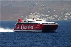 After paying Cap'n Costas the 50 euro, (plus a 10 euro tip…. we were EXTREMELY grateful that he'd made the journey for us) We waved goodbye to the Cap'n while Nickos the cabdriver grabbed YM's suit case and carried it up the steps to his waiting taxi….and I dragged mine up the steep steps…it was really hot in this little bay… We set off at, by greek standards, quite a leisurely pace …… mainly because we were on a unsealed dirt track…..He made a joke about Captain Costa… Captain Kavliaros he called him ( Captain Horny it means!) which certainly made YM laugh. Nickos then asked me what Ferry I was departing on from Naxos Town….. are you going to Mykonos he asked. No, Piraeus I replied, at 5pm….. still driving he pulled a sheet of paper from his shirt pocket, unfolded it, and read the ferry timetable….” which ship?” ….. 'the Hellenic Seaways highspeed4' I replied …. at that news, he put his seat-belt on, and took off like a dirty shirt…. so fast I could have had 'whiplash'….. it leaves at 5 pm he said…. we must hurry. ( now all this conversation is taking part in greek…my language teacher would have been proud of me!) To get from Panermos to Naxos Town you need to drive up and over the very high mountains, and then down into Naxos. It's only about 60 kms, but the road is very narrow, and very windy with lots of hairpin bends….and on the mountain, a very long way down if you go over the edge! To Nickos, getting me to the port on time was now the challenge….and one he relished. We skidded around the bends, drove flat-out on the few straight bits, and on the journey I learned quite a few new greek swear words. With his horn blaring at every corner, and many 'malaka's, pousti's, gamoti's, aga-missou's etc, all shouted at high volume at any car who was either in front of us going too slow, or passing us in the opposite direction getting too close! Good old Nikos ( young Nikos actually!) pulled up in Naxos outside the Ferry Office with 20 minutes to spare… I picked up our tickets, and he drove us to the Port where our good ship 'HighSpeed4' was waiting for us…. phew…we made it. Thanks mate. ( by the way, Nikos was the same cab-driver who drove the same trip with my brother-in-law, due to him leaving his passport behind in Koufi… more of that later…. it was like a trial run for today!)