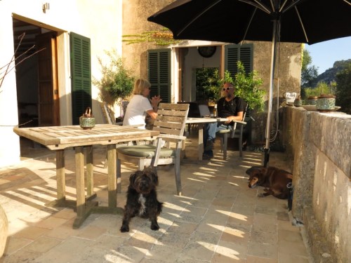 We had only booked at Son Viscos because the Petit Hotel in the centre of Valdemossa was fully booked. I am so glad that it was, as otherwise we’d have missed out on a truly unique B&B experience. On arrival, we were warmly greeted by Michael and Maria, the owners, who came out onto the road outside, as we drove up to the entrance. “Are you the Aussies?’ they asked. “Yes, we are” ( am I being sensitive, or did I spot a look of dissapointment on their faces” Who did they expect, Heath Ledger and Kylie Minogue? After Michael had carried our bags up the stairs to our room, we then sat outside on the terrace with him, enjoying a beer, while YM had a glass of wine. He gave us some very helpful and informative information on Son Viscos and the Valldemosa region. The building housing the B&B is a lovely old stone farmhouse, recently renovated by him and his wife Maria (she is originally from Venezuala)