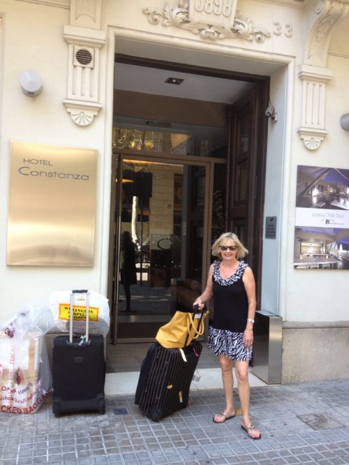 We had left our Barcelona hotel, the Constanza ( any relation to George in Synefeld I wonder)about noon, and from the street outside, ‘Carrer Bruc’ we caught one of the ubiquitous ‘black and yellow Barcelona cabs to the airport. ( The remind me of swarms of wasps when in a bunch together)