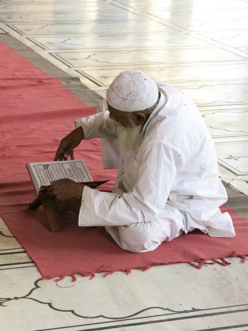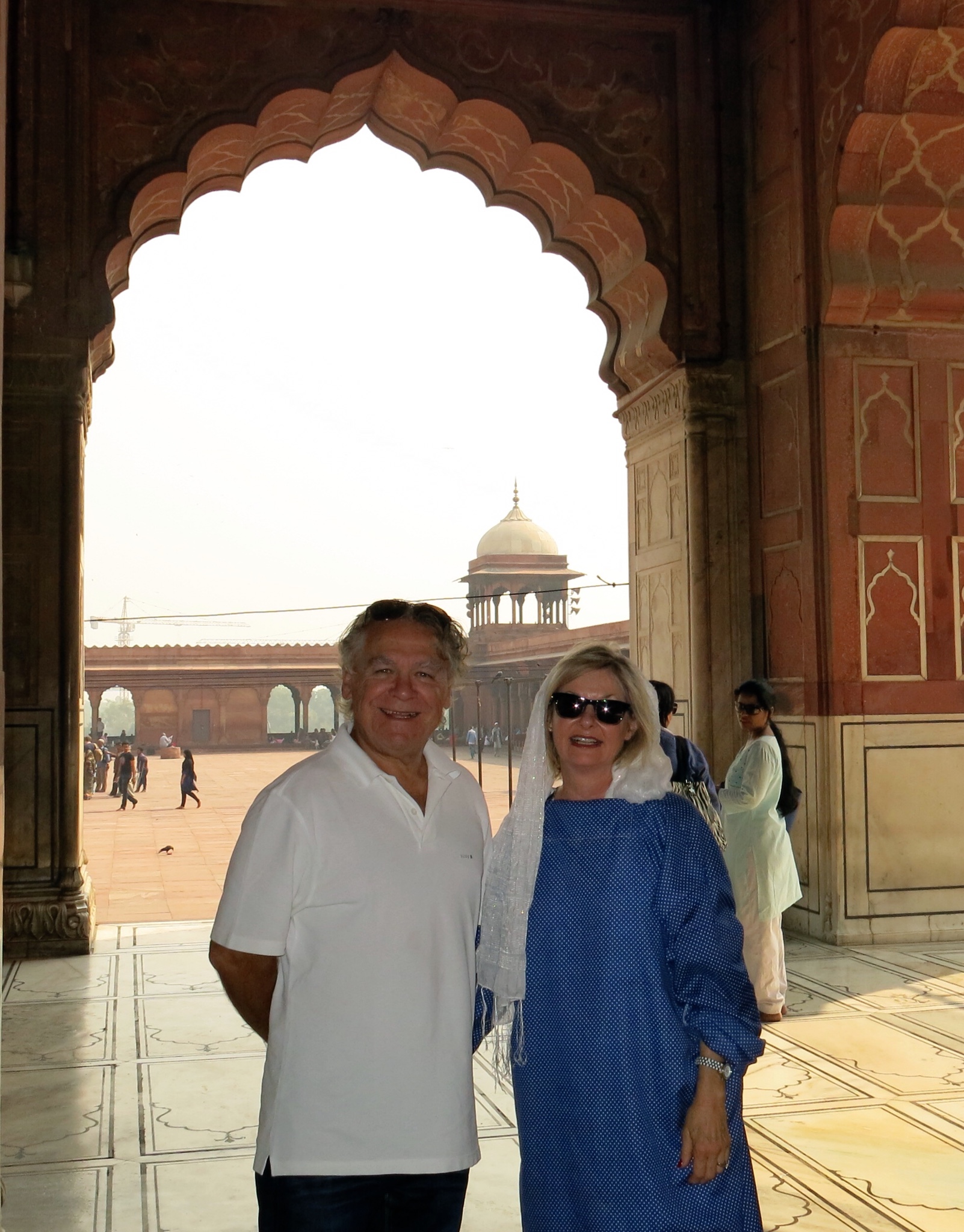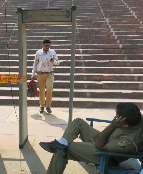 Up early, as we have to meet up with our personal tour guide at 9:30 this morning. After a superb breakfast in the '1911' restaurant, we get to the lobby 15 minutes late, to find him waiting patiently for us….( I find that most Indians seem to be the patient type here) He introduces himself as Mr Dixhit (it's pronounced 'Dikshit') but he tells us to call him Arun….. thank goodness for that. He is quite a young guy, and speaks very good English. With our trusty driver Dev Singh waiting outside for us, airconditioning already on and cold, we set off. Our first stop is in Old Delhi near to Chandi Chowk…. it's the Masjid-i Jahān-Numā, built by Shah Jahan, the guy who built the Taj Mahal ( Ok, he didn't physically build it himself, but he did commision it and pay for it).It is also the largest & most popular mosque in India. (Memsahib is underwhelmed by this information!) Building of it began in 1650 and took 6 years to complete ( what took 'em so long?)