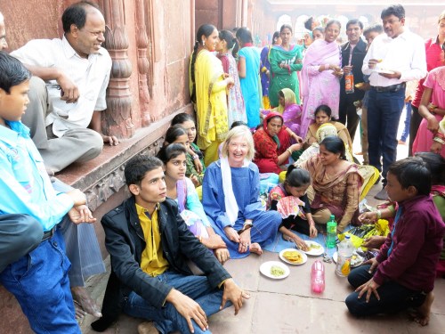 The atmosphere in the mosque is not at all reverent….in fact quite the opposite, everyone seems to be out to enjoy themselves, and every one was very friendly towards us. We stop and talk to a group of people, males and females and kids, sitting on the ground in the shade, having a picnic-type lunch. They invite us to sit and join them, which Memsahib does, and is quickly surrounded by dozens of curious and happy onlookers ( she loves it when she is the centre of attention!) I thought that she was particulary brave (or foolish) to eat some of the food they offered her…..she may come to regret this later! A baby was thrust into her arms at one stage, but I guess it wasn't used to being cuddled by a white women, and he screamed like a dervish ( appropriately so) and while he struggled to free himself, accidently scratched m's face in the process. ( Savlon will fix that….hopefully)