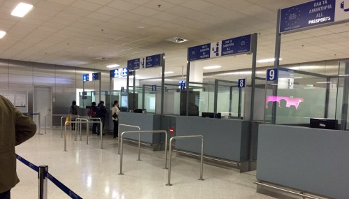 but there we were,, boarding our overnight Qatar flight to Athens , and travelling in the front of the plane for a change….for the dubious privilege of arriving at our destination half a second and 30 metres before those poor passengers in cattle class…… and I’d paid 3 times as much as they did.But we did get to disembark before them…. we were actually first off….tht’s gotta be worth something, right….and so had a very good chance to get to the Greek Immigration and Passport Control counters before everyone else did. Everyone else that is except for most of the passengers off the plane from China that had arrived an hour earlier. Having experienced the chaos that passes for normal at Athens passport control, I have to concede that there have been some minor improvements since my last trip 18 months ago. As an example, the authorities have invested in some ‘sheep runs’ in the passport control area…. you know, those crowd control queuing ropes that go back and forth, and make you believe that the queue is shorter than it really is. Progress indeed, but so ‘un-Greek’ like….. in the past, everyone just pushed and shoved to get to one of the manned desks. Anyway, after Yineka-mou and I had scurried off the plane to get a head start on our fellow passengers at the passport control, we find at least half a plane load of Chinese people still waiting ahead of us. Out of the twelve checkpoints, only three of the were manned! And one of these was for EEC passport holders only…. so two desks only open for 400 or more foreigners….. is this due to the ‘Austerity Measures’ that Angela Merkel has enforced on the Greeks…. or is it just ‘business as usual’.