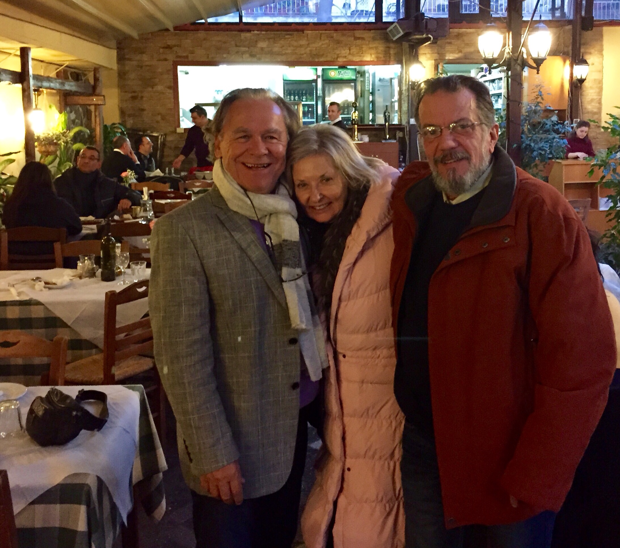 After a quick shower and change in our ‘apartment’ style room…. not as large as the internet photos would suggest ( ultra wide angle lens?), but quite adequate for our two nights stay…. we head up to the 6th floor ‘cocktail’ lounge and bar. Wonderful views of the surrounding districts from up there, including Lykavitos Hill and the snow capped mountains beyond. I have arranged to meet our friend Nick, who we haven’t seen since the time in the ’70’s when we all were crew together on the SS Australis. Nick was a ‘Third Engineer’ officer onboard and a great bloke who we shared a lot of fun times with. I give him a quick phone call, and about an hour later Nick turns up at the bar….. we have a lot to talk about and catch up on, and YM has a LOT of questions to ask of him ( we are still friends with his ‘ex’ fro back then). Later that afternoon, after giving the ‘Cocktail Bar’ a bit of a bashing, we all end up at Taverna Rozalia at the bottom of Valtetsiou street near ‘Platia Exarchion’ ( Exarchia Square)…… a very popular local taverna. They has sold out ( they said) of the roast lamb, and sorry, no goat left either, so we ended up with roast red veal, Dolmades, and Patates Tiganites ( chips to you!) plus the obligatory Koriatiki Salata ( Greek Salad)…. delicious, but by this time I could have had a Hungry Jacks burger and been almost as happy, as the combination of Mythos beer, Thesloniki wine and Mitelini Ouzo was kicking in nicely….