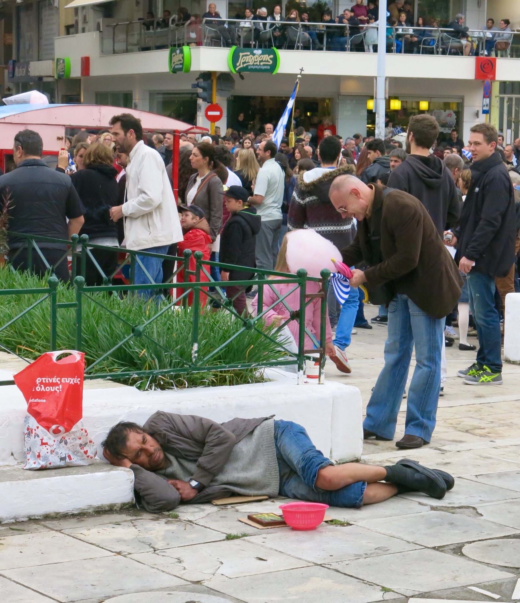 I have noticed that many Greek people here seem to me to be very tolerant and caring for those poor unfortunates who are doing it tough. They nearly all give a few coins to beggars and such, and at the Saturday farmers market I often spot stallholders giving a small bag of their produce to what look like ‘Gypsy’ kids. When we are sitting in a taverna or cafe, the owners will allow people in who are trying to eke out a living by selling lottery tickets, and other things that you may not neccesarily need. Last Sunday, we were having lunch in a small taverna in the suburb of Halepa, when a couple of ‘scruffy’ young kids, about 12 and 14 years old, came into the place, playing drums and bouzoukia…. and not that good either ( well, they were quite young…. and hopefully they will get better with more practise!) They went from table to table playing their instruments and singing, traditional greek music, and every table gave them a euro or two…… Maybe it’s not like this everywhere, maybe just the places we frequent, but I think it’s a great attitude to have…. live and let live. ( Some of my Greek friends reading this may think that I am a little naive)