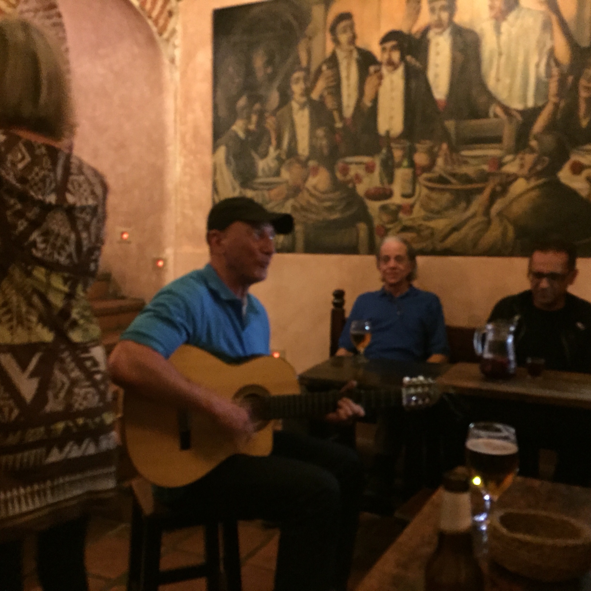 Located in a sort of cave under the Plaza Mayor in Madrid, El Mesón de la Guitarra may just be the perfect little bar to have some sangria, some tapas and listen to some authentic live guitar playing that is not for show, or only for tourists but for ambience, for fun. It gives you the the feeling you are no longer in your own country (assuming you are not Spanish), and that’s what most people are looking for when they travel abroad. Maybe that is why most people like the Guitarra the best among the 4 or 5 cave bars that line this street. (Well, Zarzamora across the street is fun too!)