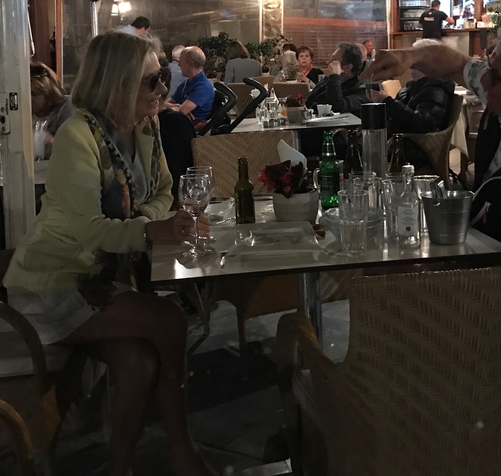 I pointed out to the now emotional and visibly distressed ‘Yineka-Mou’ ( or YM, as I’ll refer to her from now on) that what her ‘partner’ thought was a ‘LifeStyle Choice’ is actually the law in West Crete, which makes it an offence for any adult to be clean shaven, although for seniors over the age of 51, they may, as a concession, trim their beards, but only with a pair of blunt nail scissors. “ Really, are you joking” she said, “ blunt nail scissors? I thought they were all fans of George Clooney…. I need another drink, any SSB, or is there only retsina ?….. Oh, and some ice cubes please, its a hot night!” After refreshing her glass, although not with SSB, whatever that is, but with a local variety, she continued “…and what about the bloody trumped-up illegal entry charge…. That is definitely not right. It wasn’t our fault, its that new bloody airport…..and when are they going to finish it….. we preferred  the old one , smaller and you knew where everything was…. I mean, they now have two exit doors fa-chrise sakes, how were we to know which was the correct one to use…. neither of ‘em had a proper door, and neither of ‘em had any signs up…. Jeez, who designs an airport like that… are the ever going to finish it….. by the way, not a bad drop this, whatever it is ”