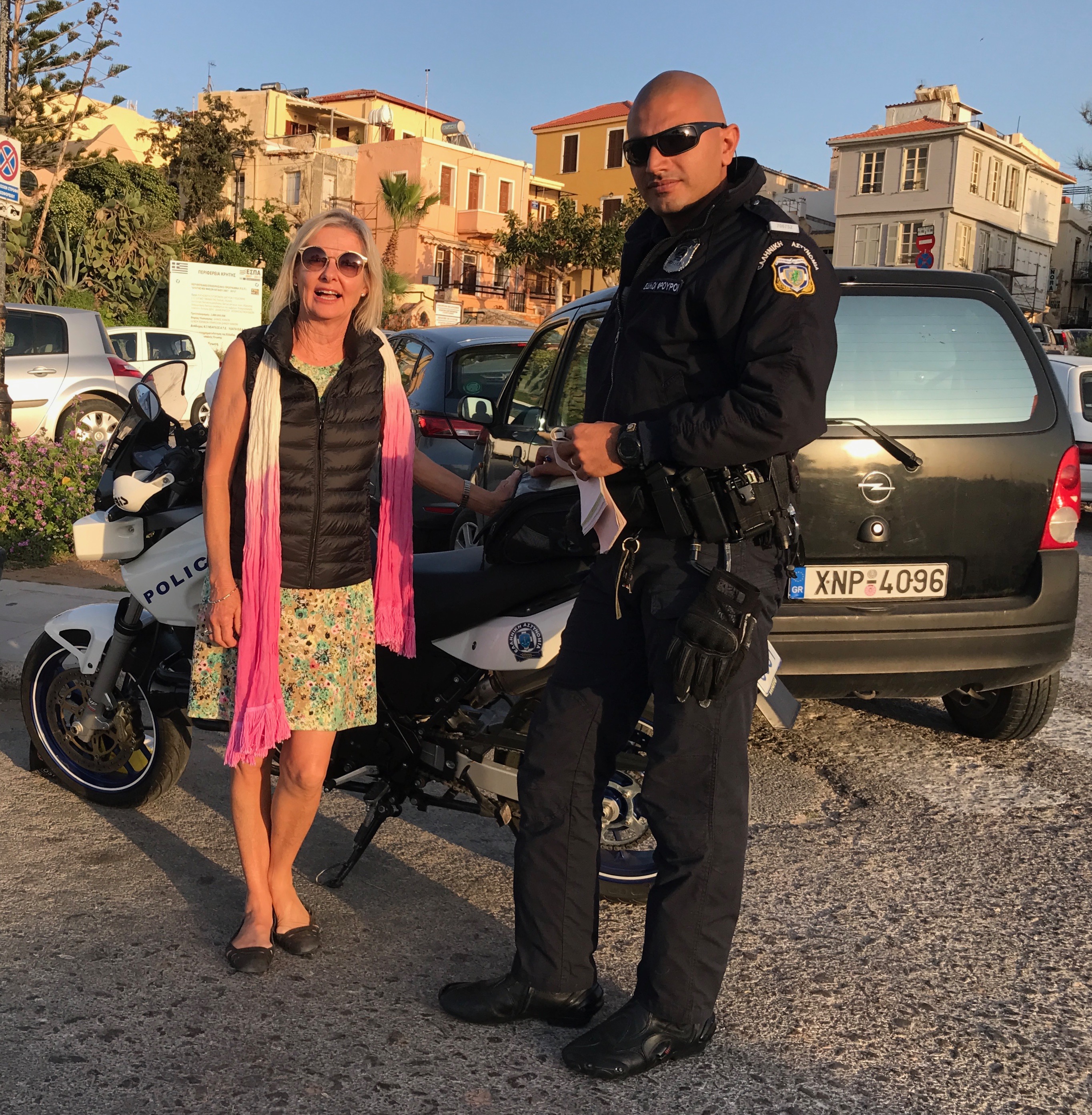 His attractive young travelling companion, seen above pleading with a local policeman for help, confided to me that her name was ’Yineka-Mou.  I managed to track her down and interview  her later that evening, in one of Chania’s  trendy new waterfront bars in the Venetian quarter. In the circumstances, I initially found her to be  remarkably calm about his arrest.  After informing her that Mr Twice could be spending the rest of his life behind bars on the island, she replied “ Oh, I’m not a bit concerned about it all really, you have to look on the bright side of life, and to be honest, it’s like a dream come true for my TomTom”.  She continued “ its what he’s really always wanted, to spend more time in Greece….. and I’m sure that the time spent in prison will be of  great help for him with his Greek lessons. I shouldn’t say this, but TomTom’s  been struggling a bit with the language lately, despite attending a Greek Language school in Perth for the past 12 years ….. bit of a waste of money if you ask me, but there you go….. by the way, can you order me a drink….. slow service, doesn’t anyone speak english here?  ”