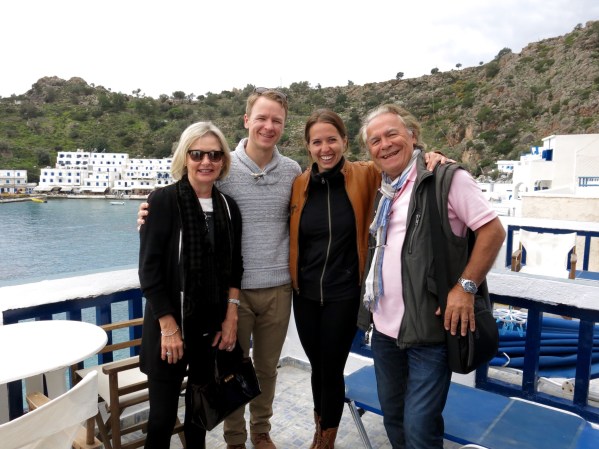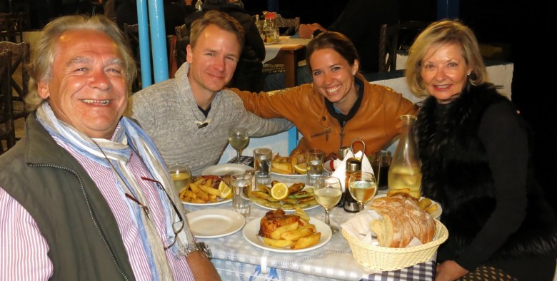 I mentioned earlier that we had met a lovely young Irish family who were also staying at Allison’s hotel…. Mum, Dad and three young daughters, all of whom had such outgoing friendly personalities…… and all whom had quite evidently kissed the Blarney Stone at some stage in their life…. probably more than once by the way they could talk ‘craique’ as they say in Dublin. Molly, Elly and Imogen, and John and Katherine….. On our way to dinner at Pavlo’s, they stopped us as we passed them at their room on the beach, and we joined them for a drink or two. Allison the hotel owner also joined us, and sent Molly off to the bar for yet another bottle of wine…. There go the profits Allison! A few minutes later, J and L, the two ‘hotel-crashers’ were passing by and they also joined the crowd…. It turned into quite a party….. but that’s the Irish for you.