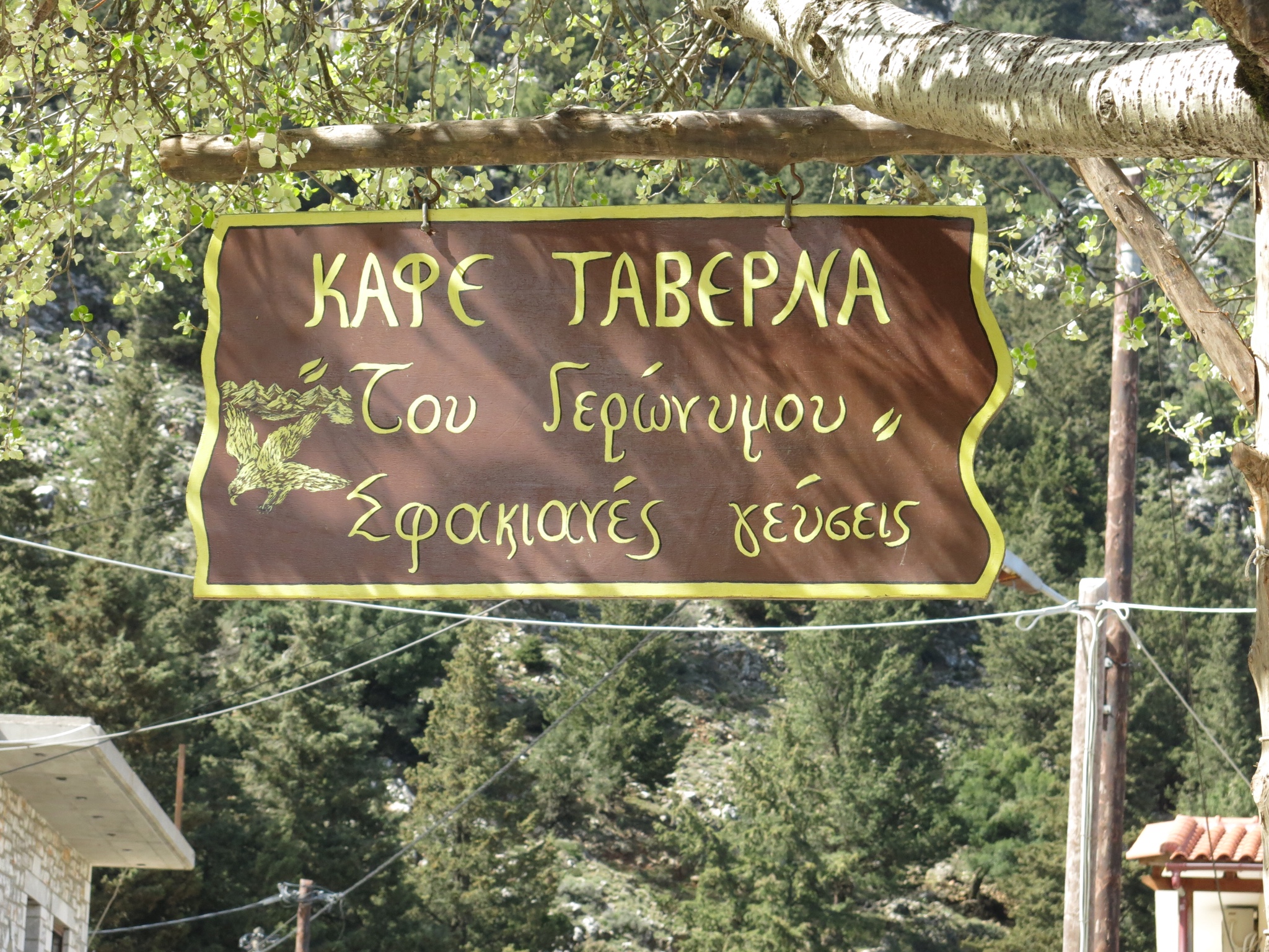Twenty minutes later and we are back in Hora Sfakia, with the car still on the jetty. Lason and Jauren suggest we stop on the way back to Xania for a bite of lunch, so I tell them to go ahead of us and we’ll meet up at the village of Askifou Sfakia in the mountains, which is about halfway between the two places.