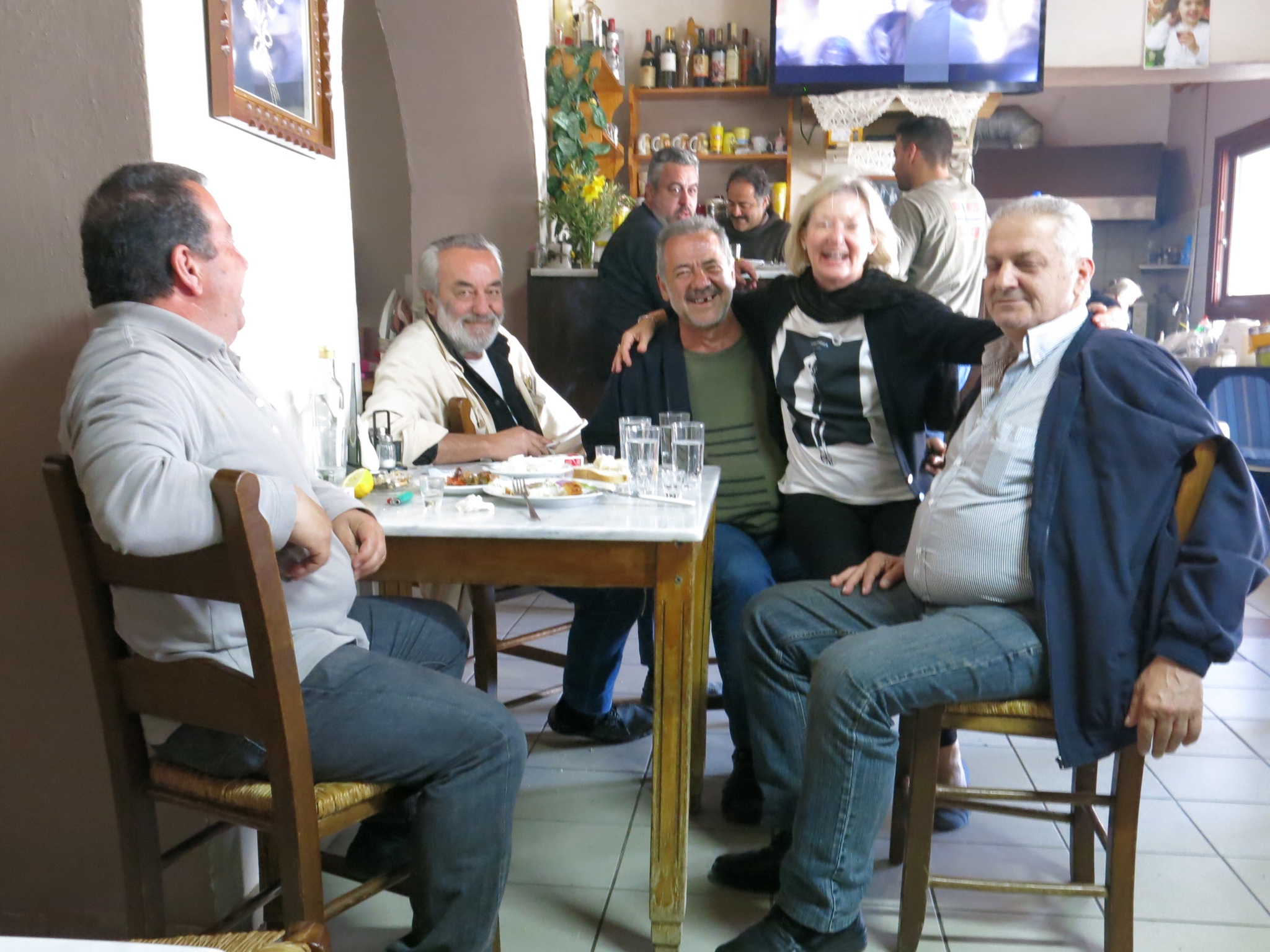 This being Crete, where the hospitality is something to be experienced, he invites us to come and see it….” has lovely view, come see, have raki, why not…. but excuse mess, is bit unmessy” (unmessy? I think that Stavro meant untidy) . We tell him that we are a bit pushed for time, maybe another day we visit his man cave, but if we think he’ll accept this you are wrong. As an alternative we are pressed into accompanying him to a taverna further along the Main Street (ah,ah, Main Street!) where his friends are waiting for him. Now Stavros Is not a man that takes no for an answer, and so while the Texans take off back to Xania, YM and I follow him to where his friends are.