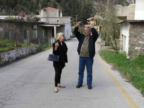 At around 5:30 we returned back to the village, and on the way down we met a young couple, each of them carrying a small pulll-a-long suitcase on their shoulder….well they couldn’t exactly pull it along on the stony track up the mountain…and they told us they were leaving because of all the noise. ” is it still going on?” I asked….” Oh yes”… ….