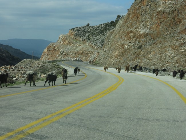 The drive back to Xania is a pleasant one with no surprises on the winding mountain road, apart from having to stop occasionally to let next weeks Easter lunch cross the road, and we return our hire car back to my friends at Tellus.