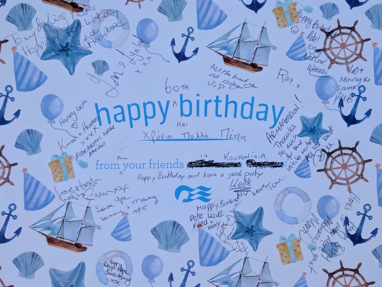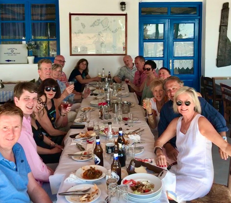 I had introduced Mad Petros to this island over 6 years ago, when I had invited him to my own ‘special’ birthday here…. (OK, it was my 70th if you must know) and it was obviously a successful party as three years later Mad Petros decided it would be a great place to hold his own ‘significant’ birthday here, his 60th, in exactly the same restaurant, Captain Nikolas’ fish taverna, as I had held mine, some 4 years earlier.